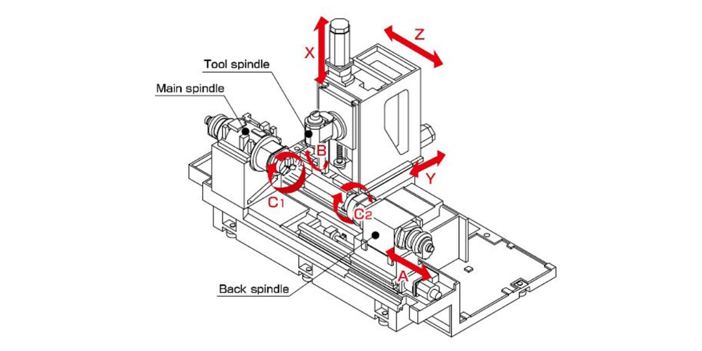 - Crossed at right angle slide construction assures high-accuracy complex machining and free-chip-flow